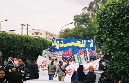By all accounts, the police reaction was mild when compared with previous treatment of protestors. The security forces were given orders not to harass demonstrators. It was very obvious. . . . A soldier couldnt understand why his officer was stopping him. [He seemed to be thinking] You used to give us orders to hit, said a Cairo University lecturer who attended.262 Nevertheless, a few students suffered injuries. The police punched one named Wail in the eye, and `Ain Shams professor Aida Seif El Dawla took him to the hospital.263 Security forces detained two other students, a man and woman.264 An Islamist protest four days later addressed the same international issues in a more orderly form. This anti-war demonstration consisted of an organized march around the campus and did not seek to leave university grounds. Professors in suits led the four-hour march, followed by male students with megaphones and banners. More quiet female students brought up the rear. This protest was much larger than the leftist one, illustrating the size of the Islamist movement. It also put a religious spin on the same political issues. The leftists had been politically divided between Nasserists calling for a pan-Arab nation and socialists and communists calling for revolution. The religiously more united Islamists carried Qurans and signs that read Jihad is the answer. While the largest anti-war rallies took place off campus, members of the university community were inevitably involved. On March 20, 2003, the day the U.S.-led war with Iraq started, a demonstration that some observers said had begun at AUC swelled into a protest of 10,000 people in Tahrir Square, the largest there since 1972.265 The protest continued the next day, at which point the state responded violently. Security forces arrested about eight hundred activists and injured hundreds more, many of whom were professors or students.266 One student, for example, was detained for more than twelve hours and was blindfolded and forced to stand for several hours. He heard police slap and electroshock others.267 On March 22, three female students were arrested while trying to enter Cairo University to attend another antiwar demonstration. Police kicked Nurhan Thabit, a pregnant Cairo University student, during her arrest and while she was blindfolded and handcuffed in custody.268 University Issues: `Ain Shams University 1999International politics have dominated protests in recent years, but students have also staged demonstrations to challenge university policies on issues relating to campus life. Activist students have frequently rallied in support of peers suffering at the hands of the administration, such as handicapped students denied access to their school or education students denied job protection. While such demonstrations address internal university affairs rather than international or national concerns, police repress them with as much or more violence.