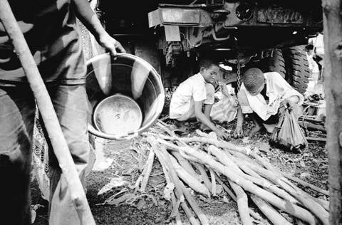 street children sleep together for warmth and protection. In Kinshasa and other urban areas, roundups of large numbers of street children occur nearly every year. Individuals who work and advocate for street children have met with police and government officials to try to stop the roundups and instead focus on reintegration and rehabilitation. They told us their efforts had had some success in limiting the number and duration of roundups in the past year.45 Nonetheless, as described above, in September and November 2005 authorities ordered the roundups of large numbers of children in Goma and Kinshasa. Special Protection Unit of the policeIn Goma and a few other towns in eastern DRC, a special unit for the protection of children (Police Speciale pour le Protection des Enfants, PSPE) has been established to handle children in trouble with the law. Nongovernmental organizations, government officials, and ordinary Congolese commended the work of the PSPE and have found better treatment of children handled by that unit than by ordinary police or military. Two officers from the PSPE told Human Rights Watch that they had received specialized training in cases involving children and only detained children as a last resort (and in those cases, kept them separate from adults). They said that street children reported abuse by other police officers to them, but felt that through training and the expansion of childrens units in other towns, violence could be curtailed.46 Government and judicial officials in other cities spoke of the need to create special police units for children both to ensure that cases are brought more quickly to their attention and also so that children could receive better treatment and protection from the police. One magistrate in Lubumbashi told us that accusations of prolonged or illegal detention and police abuse were not limited to children, but were reported more generally among the entire population. For him, poor remuneration of police, salaries paid late, and little incentive to prevent crimes, helped account for some of the problems.47 Another official in the Division of Justice in Kinshasa stressed the need for more training for police to instruct them on other methods of interrogation beyond physical abuse.48 The state prosecutor in Lubumbashi suggested that police abuse of children is rare and that street children could not always be trusted to tell the truth.49 Nonetheless, he stated, as did other justice officials we interviewed, that the establishment of special police units for children could provide additional protection for children. When questioned about roundups and police abuse of street children, police commanders responded that they were following instructions from government officials and they were merely doing their jobs. When asked about the roundup in Goma in September 2005, the police commander responded that children were not arrested nor allowed to be held overnight in jail. Rather, the intention was for their transfer to the PSPE for processing and family placement.50 In Mbuji-Mayi, a police commander denied that police officers beat or misuse street children but instead protect children from abusive adults, as was the case following the events of September 2004 (see section below, Street Children Used for Political Purposes).51 Child LaborFor many street children, their ability to survive depends on their finding work to earn enough for food. Street children transport goods, sell food, work in restaurants and homes, load and unload passenger busses, and engage in other temporary work in exchange for food or money. Other street children are involved in hazardous or illegal labor, such as mining, prostitution, or selling drugs and alcohol. Some adults may take pity on these children and allow them to perform labor in exchange for a reasonable sum. But others take advantage of street children, paying them less than they would adults, because they know these children have little choice. At a center for street children in Goma, counselors who work with children reported that children can be easily exploited, for example, accepting work that adults will not, or carrying heavy loads in exchange for smaller sums of money than adults would normally receive. They highlighted the vulnerability of street children by mentioning one case in particular where street children were entrapped by a woman selling marijuana. After she had sold some to a few boys, she later threatened to report them unless they agreed to sell it for her. They began selling marijuana in town and a few were subsequently arrested.52 The following examples from Noah, Nicholas, and Matthew are illustrative of the types of jobs that children do to survive. Twelve-year-old Noah spends his time in the Virunga market looking for work. He told us that on a typical day he gets up when the cathedral bells ring, puts away the cardboard box he sleeps on, and makes his way to the market. He said that there is often little to do but play cards with his friends and beg for money or food, but sometimes he is lucky enough to find a job transporting packages for shoppers. At other times he is paid to clean excrement from an area of the market that people use as a toiletfor this work, he might get 50 francs (U.S.$0.10).53
