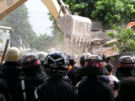 One of the overarching themes of the history of Jakarta is the conflict between the desires of its rulers to create a model city to display to the world, and the desires of the poor of Indonesia to seek opportunities within it.7 This tension has often caused clashes between the urban poor who have built homes and communities to provide for their own survival, and regional and national leaders with urban planning visions and private developers with their own business interests. Over the years, a number of factors have been presented by the Jakarta government as justification for forcibly evicting people from their homes, including development and infrastructure projects, urban redevelopment and beautification projects, public order concerns, property market forces supported by state intervention, and alleged natural hazards such as flood risks. Following the end of the Second World War and Indonesias independence, Jakarta attracted internal economic migrants from around the country who fled poverty in rural areas for the opportunities available in the city. This rapid influx of migrants put incredible pressure on the citys facilities and led to a critical housing shortage. Many migrants could not afford land on which to build. Then, as today, the result was overcrowding of the existing housing stock and an explosion of informal squatter settlements. Scarcity of available or affordable residential land forced many people to build on land which they did not own. Migrants and the citys indigenous urban poor provided communities for themselves by building in any available space: reclaiming coastal areas and swamp land; subdividing unused lots; or staking plots in the public spaces along railway tracks, canals, rivers, roads, and under bridges.8 As Jakarta grew, retail and commercial buildings surrounded these more informal and unplanned settlements, but city leaders rarely incorporated these urban villages into their development plans or structures. Although a government initiative begun in 1968 known as the Kampung Improvement Program began to upgrade the physical infrastructure of many urban villages (kampung) with the help of foreign donors, it did not address underlying land tenure issues.9 Many communities, which had started as squatter settlements, acquired paved streets, drainage canals, and access to public utilities.10 Although the scheme has been hailed as a landmark in slum management in the developing world, in many cases officials did not consult with residents and the program was not as successful as it might have been.11 Indeed, researchers who have assessed the program have noted that many residents had little interest in maintaining the new facilities which they felt had been imposed on them.12 In other cases, upgraded settlements were later demolished in favor of new business and commercial facilities.13 As Jakartas importance as an economic center increased, large private developers sought to build office buildings and shopping malls in the city center. These developers often exploited the tenuous legality and physical nature of many of the communities built by the indigenous and migrant urban poor to acquire the land for minimal compensation. The local government, at times aided by martial law, cleared large tracts of land to make way for public works projects as well as commercial buildings. An improving economy during the 1970s, buoyed by high oil prices, assisted both public and private construction. Housing construction claimed tens of thousands of hectares of land during the 1970s, three-quarters of which was sub-divided in a manner that violated planning regulations.14 Many of todays urban villages grew out of these subdivisions. During the 1980s, Indonesias economy began to diversify and local entrepreneurs invested more in property and construction, helped by financial deregulation and increased demand from an expanding middle-income group. This increase in development led to a rise in land prices and also speculative practices by private investors. Less educated farmers and urban inhabitants were more prone to intimidation and non-market price acquisitions, and thousands of individuals were evicted from their farms and homes to make way for new luxury houses.15 During the 1990s, speculators controlled about 40 percent of the land in central Jakarta. They had considerable power over land prices and used it to construct large numbers of high-rise office buildings on favorable terms.16 Property speculators also moved aggressively to construct luxury houses during the 1990s, leading to over-building at the expense of agricultural land on the fringes of the greater Jakarta area.17 Indonesias economic crisis that began in 1997 hit Jakarta hardest, and the citys urban poor population increased significantly as economic activity declined and high unemployment pushed workers from low-income jobs into the informal sector.18 The crisis also hurt property developers, large-scale developments slowed, many infrastructure projects were suspended, and sizeable areas of land fell idle.19 Today, the majority of poor and middle-income residents continue to live in unplanned and unregulated settlements.20 Poor residents continue to occupy disputed land, state land, and private unoccupied land. Land supply remains constrained because national government agencies, local government, and private developers hold most of the land that could be developed for new housing yet choose not to make it available.21 During Sutiyosos tenure as governor, market-produced non-subsidized housing for low- and moderate-income groups has declined despite oversupply in high-income housing.22 Most low-cost housing is financed at the household level without any assistance from the government or formal financial institutions. People often start by building small houses, and then gradually expand and improve structures as needs dictate and finances allow. Such practices account for about 80 percent of Indonesia