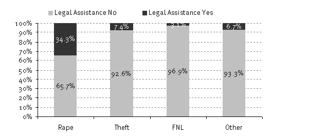 Data from Mpimba Prison indeed suggest that among the children, those accused of rape were 6.5 times more likely to see a lawyer, compared to those accused of theft. Those accused of rape were also 16.1 times more likely to see a lawyer than those accused of being rebels, most likely because there havent been trials for alleged FNL members, and no organization has been providing them with legal counseling. Grounds for Arrest and Legal Assistance