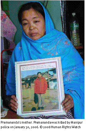 A woman is arrested at her home at night. The authorities provide her family a signed document acknowledging her arrest. The next morning, villagers find her bullet-ridden corpse some four kilometers away from her home. There are widespread protests following the womans death. Promises are made by the highest authorities of the country, and yet, after four years, justice remains undone. No one is punished for this crime. This is the story of Thangjam Manorama Devi, a 32-year-old resident of Indias Manipur state. The paramilitary Assam Rifles suspected her of links to an underground separatist group and detained her on July 11, 2004. The soldiers raided her home in Bamon Kampu village a little after midnight, asking the family to wait outside while they questioned her. They then signed an arrest memo, an official acknowledgement of detention put in place to prevent disappearances and took her away. Her body was found outside a nearby village. She had been shot through the lower half of her body, raising suspicion that bullets had been used to hide evidence of rape. Human rights violations by security forces engaged in counter-insurgency operations in Manipur state have occurred with depressing regularity over the last five decades. Separatist militants have also committed widespread human rights abuses. According to the police, nearly 3,000 civilians have died in the conflict since 1990. At least 1,300 militants and nearly 1,000 members of the security forces have also been killed. According to unofficial sources, at least 20,000 people may have died due to violence since the conflict began in the 1950s. But Manipur, a small state of two million people, is tucked away in the countrys remote northeastern region. Not much that happens there makes the national newsunless it is a particularly brutal attack by militants. However, the security forces clear role in Manaromas killing captured widespread media attention. Protests erupted in Manipur, while domestic and international human rights groups demanded an immediate investigation and the prosecution of those responsible. Concerned that the government would fail to hold soldiers accountable for the killing, as had repeatedly been the case in the past, for several weeks Manipuris took to the streets. Students, lawyers, traders, mothers, journalists, and human rights activists marched every day, demanding justice. One man committed self-immolation in protest, several others attempted suicide. The paramilitary Assam Rifles claimed that Manorama was shot dead while trying to escape. In later affidavits, the soldiers implicated said that she was helping the army locate another militant when she instead tried to escape. It is a difficult account to accept: an unarmed, handcuffed woman, wearing the tightly-bound Manipuri sarong that does not lend itself to big strides, supposedly managed to escape the custody of an armed escort. And if she did, it does not explain why the soldiers were unable to catch her and had to shoot to kill. There has also been no explanation why Manorama had not been handed over to police custody by the arresting officials of the Assam Rifles, as the law requires. Or why no female official had been brought in at the time of this night arrest, as is the rule. Soldiers were able to arrest Manorama because they are empowered to do so under Indias Armed Forces (Special Powers) Act (AFSPA), the 1958 emergency law under which the armed forces are deployed in internal conflicts and enjoy broad powers to arrest, search, and shoot to kill. This 50-year-old law also provides security forces immunity from prosecution and has thus protected members of the Assam Riflesas well as soldiers in Jammu and Kashmir, and other states in Indias northeastresponsible for killings such as Manoramas from being brought before a civilian judge to be prosecuted for murder and other offenses. Manipuris have long campaigned for the repeal of the AFSPA. Demanding that the act be scrapped, human rights activist Irom Chanu Sharmila has been on hunger strike for nearly eight years. Her protest began after Assam Rifles gunned down ten civilians on November 2, 2000. She remains in judicially ordered custody, force-fed through a nasal tube.