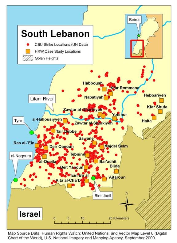 Human Rights Watch believes that cluster munitions stand out as the weapon category most in need of stronger national and international regulation to protect civilians during armed conflict. Urgent action is necessary to bring under control the immediate danger that cluster munitions pose to civilians during attacks, the long-term danger they pose after conflict, and the potential future dangers of widespread proliferation. Human Rights Watch believes that parties to a conflict should never use unreliable and inaccurate cluster munitions. In 1999 Human Rights Watch was the first nongovernmental organization (NGO) to call for a global moratorium on their use until their humanitarian problems have been resolved. Governments should bear the burden of demonstrating that any cluster munition is accurate and reliable enough not to pose unacceptable risks to civilians during and after strikes.24 International awareness of the need to address cluster munitions is growing rapidly. Most notably, on February 23, 2007, in Oslo, Norway, 46 countries agreed to conclude a treaty banning cluster munitions that cause unacceptable harm to civilians by 2008.25 Another eight states joined the movement in a follow-up meeting in Lima, Peru, in May 2007, and a total of 94 states were on board by the end of the next meeting in Vienna, Austria, in December. The treaty will prohibit the use, production, transfer and stockpiling of cluster munitions that cause unacceptable harm to civilians and have provisions for clearance, victim assistance, risk education, and stockpile destruction.26 In 2008, governments will develop and negotiate the treaty at meetings in New Zealand and Ireland.27 We have given ourselves a strict timeline to conclude our work by 2008. This is ambitious but necessary to respond to the urgency of this humanitarian problem, said Norways Foreign Minister Jonas Ghar Støre.28 This initiative, which closely mirrors the Ottawa process banning antipersonnel mines, follows years of advocacy by Human Rights Watch, the Cluster Munition Coalition, which Human Rights Watch co-chairs, other NGOs, the International Committee of the Red Cross (ICRC), and states. Lebanon has been a vocal participant in the Oslo Process, while Israel has stayed away. States are also pursuing domestic measures to address cluster munitions. Belgium became the first country to adopt a comprehensive ban on cluster munitions in February 2006, and Austria followed suit in December 2007. Norway declared a moratorium on use in June 2006 and Hungary in May 2007. Parliamentary initiatives to prohibit or restrict cluster munitions are underway in numerous countries. Many countries have in recent years decided to remove from service and/or destroy cluster munitions with high failure rates, and some have called for a prohibition on use in populated areas. International humanitarian law on the use of cluster munitions is in the process of development, but a consensus is developing that their use in populated areas is a violation, on account of the likelihood of indiscriminate or disproportionate harm to civilians both at the time of the attack and in the future because of unexploded duds. The preamble of the final declaration of the Third Review Conference of the Convention on Conventional Weapons (CCW), for example, recognizes the foreseeable effects of explosive remnants of war on civilian populations as a factor to be considered in applying the international humanitarian law rules on proportionality in attack and precautions in attack.29 States parties, including Israel and the United States, adopted this language on November 17, 2006. Human Rights Watch believes that the international community should move to establish predictable future effects as not only a violation of IHL but also as a basis for criminal responsibility. The tragedy that has taken place in Lebanon should serve as a catalyst to both national measures and a new international treaty on cluster munitions. MethodologyThis report is based on Human Rights Watchs on-the-ground research in Lebanon and Israel, supplemented most notably with information provided by MACC SL. It also draws on more than a decade of field research and documentary research on cluster munitions by Human Rights Watch. Human Rights Watch researchers were in Lebanon throughout the conflict and were the first to confirm Israels use of cluster munitions when they documented the IDFs attack on Blida on July 19, 2006. At the same time, Human Rights Watch researchers working in northern Israel confirmed the widespread presence of cluster munition artillery shells in the arsenals of IDF artillery teams stationed along Israels border with Lebanon. Immediately after the ceasefire, Human Rights Watch researchers traveled to south Lebanon, the location of the most intense cluster munition contamination. They spent six days surveying the extent of the damage from cluster attacks and conducting interviews. Researchers returned to south Lebanon in mid-September 2006 for several days and spent another week in late October 2006 documenting the ongoing aftereffects of the submunitions. Our researchers investigated more than 50 cluster munition strikes, including strikes in more than 40 towns and villages in south Lebanon. They collected physical evidence of the strikes, took photographs, visited hospitals, and interviewed dozens of civilians who had been directly affected by the cluster munition attacks, including numerous men, women, and children who had been injured by submunitions or submunition duds. Researchers spoke to many Lebanese in their towns and villages just as they were returning home. Human Rights Watch also met with demining professionals from the Lebanese Army, the UN, and NGOs who were cataloguing and clearing the vast fields of deadly submunition duds in Lebanon. Those civilians that had remained in these villages and towns at the time of the attacks, however, were usually taking shelter from bombar