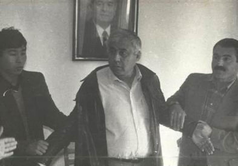 Оппозиционный активист и депутат парламента Мели Кобилов сфотографирован в момент задержания сотрудниками госбезопасности Узбекистана в Ташкенте в 1993 г. © Бахтиёр Хамраев, 1993