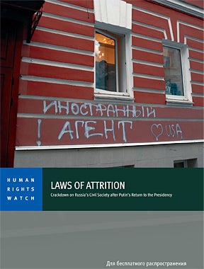 © 2012 Yulia Klimova/MemorialFor the past four years, the Kremlin has sought to stigmatize criticism or alternative views of government policy as disloyal, foreign-sponsored, or even traitorous. It is part of a sweeping crackdown to silence critical voices that has included new legal restrictions on the internet, on freedom of expression, on the rights of lesbian, gay, bisexual and transgender (LGBT) people, and on other fundamental freedoms.