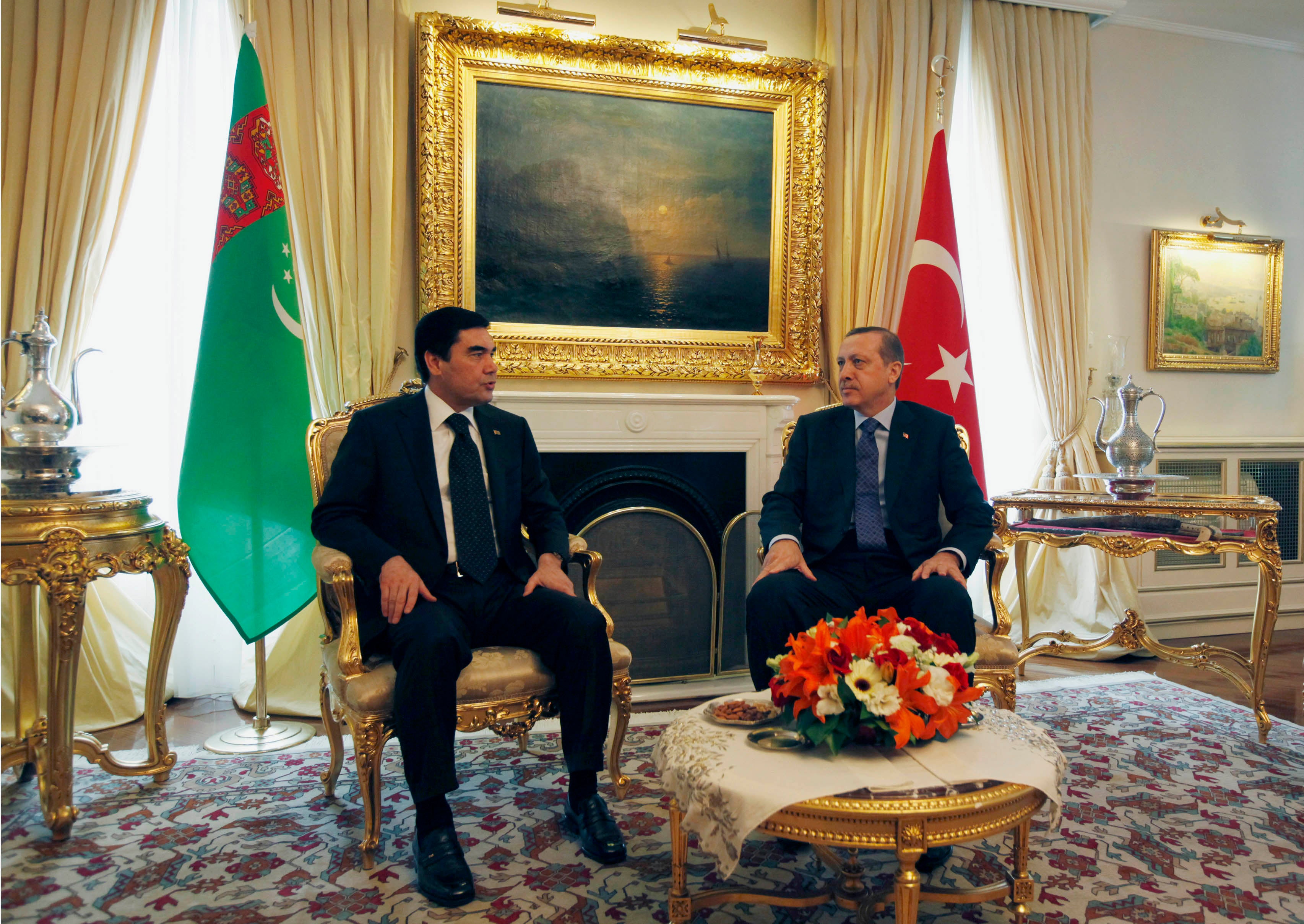 Türkmenistan Devlet Başkanı Gurbanguli Berdymukhamedov (solda) ve Türkiye Başbakanı Recep Tayyip Erdoğan 29 Şubat 2012'de Ankara'da bir araya geldi.