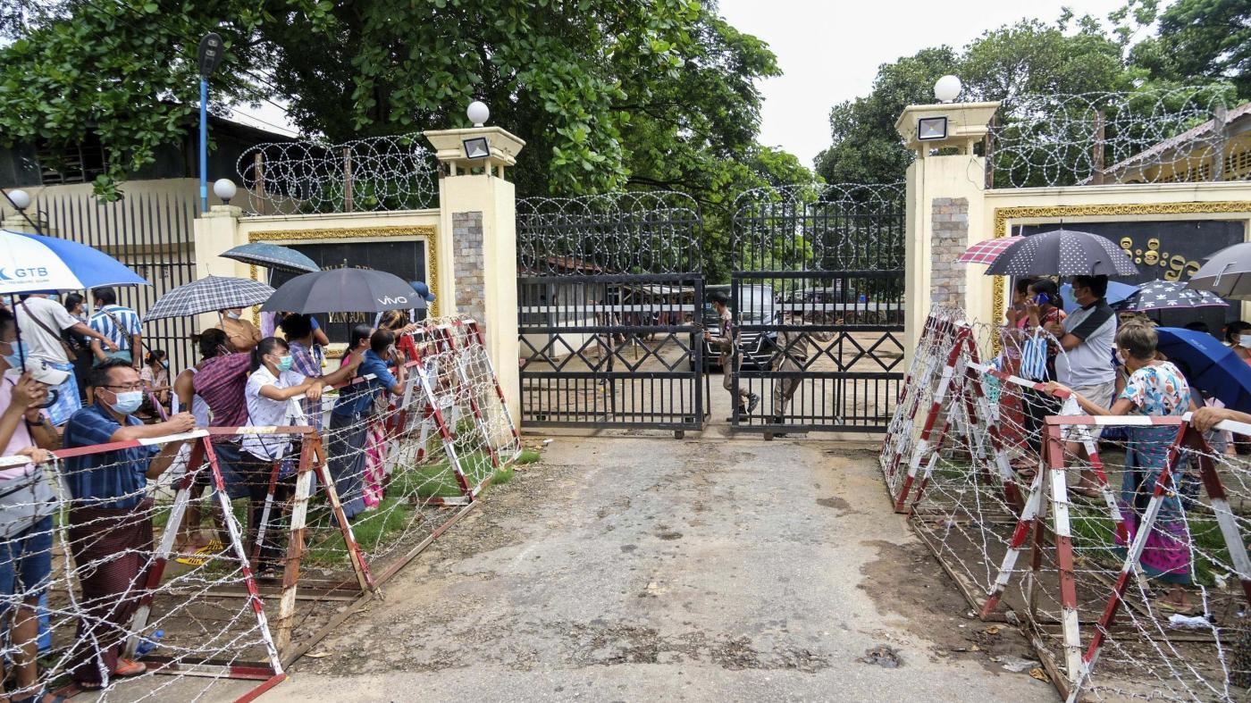 An Iranian man wearing a protective face mask looks on as people line-up to receive China's Sinopharm vaccine in central Tehran on July 19, 2021.