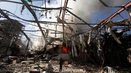 Human Rights Watch has documented 58 unlawful airstrikes by the coalition, some of which may amount to war crimes, killing nearly 800 civilians and hitting homes, markets, hospitals, schools, and mosques. An airstrike on a crowded funeral in October killed at least 100 people and wounded 500. Human Rights Watch also documented how the Saudi Arabia-led coalition repeatedly attacked civilian factories, warehouses, and other protected sites in violation of the laws of war.