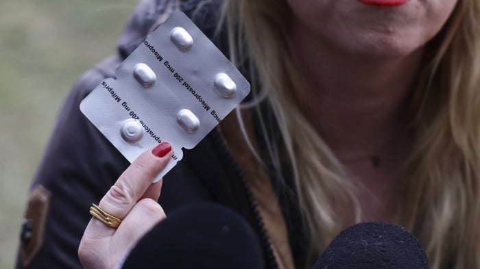 An activist shows Misoprostol ahead of the verdict in the appeal court in Warsaw, Poland on February 13, 2025. A court ordered retrial in the case of abortion abetting by activist Justyna Wydrzynska.
